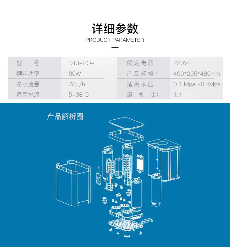 5級直飲凈水器DTJ-RO-K 超濾凈水機雙出水口